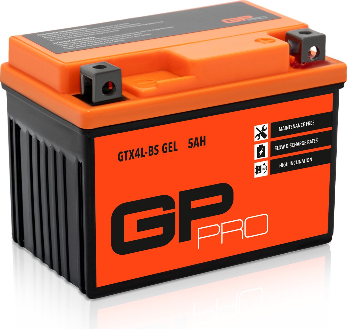 GP-PRO batterie gel 12V 5Ah GTX4L-BS batterie scooter / moto, sans entretien scellée préchargée similaire à YB4L-B / YTX5L-BS / YTX4L-BS