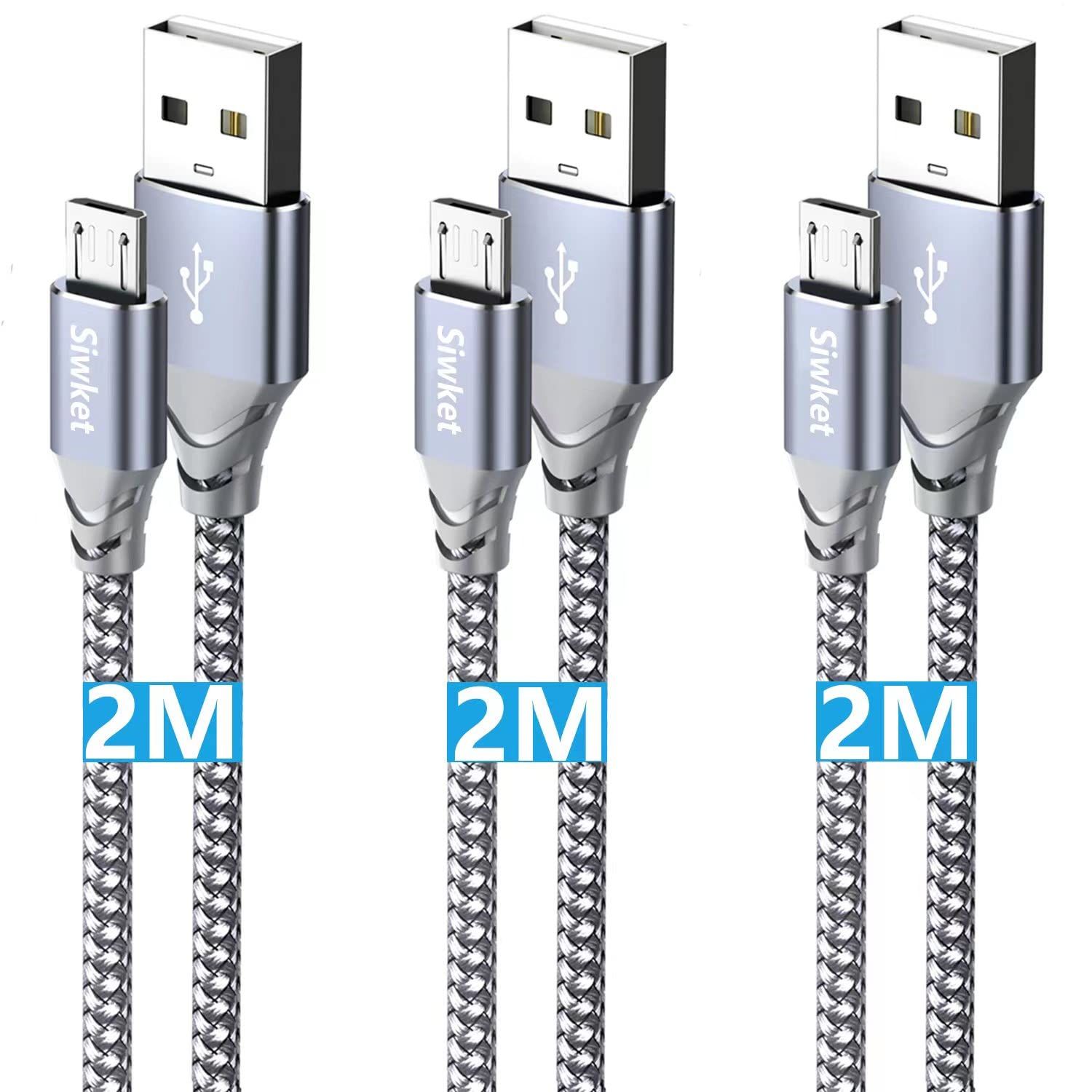 Lot de 3 câbles micro USB tressés USB A vers micro câble de charge Android pour Samsung Galaxy J7, S7, S6, Kindle Fire, tablettes Fire HD, manette PS4, Sony, HTC, LG, moto, Huawei 2 m ¿