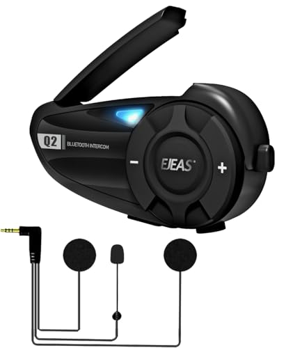 EJEAS V6 Bluetooth Intercom Moto Duo 1200M Motocyclette Bluetooth Communication Système, Kit Main Libre Moto avec Réduction du Bruit, Connexion de jusqu'à 6 conducteurs, USB-C