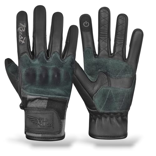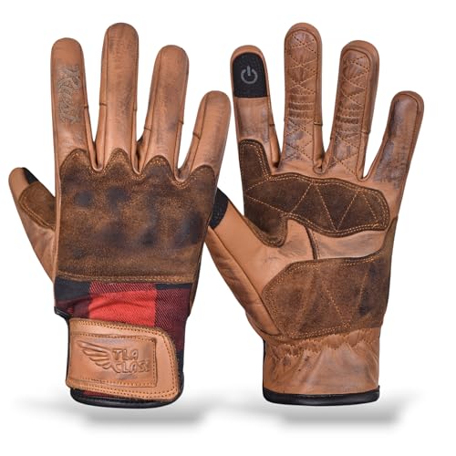 TLA RUST Gants de moto vintage en cuir, protections des articulations, homologuées CE, 2XS à 4XL pour hommes et femmes, pour cafè racer, scooter, écrans tactiles, protection contre les chocs élevés.