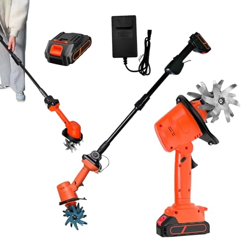 Mini motobineuse sans Fil, motoculteur électrique portatif, Outil de Jardinage avec Batterie Lithium Rechargeable et Perche télescopique, motobineuse pour Ferme, Jardin et pelouse(No Pole)