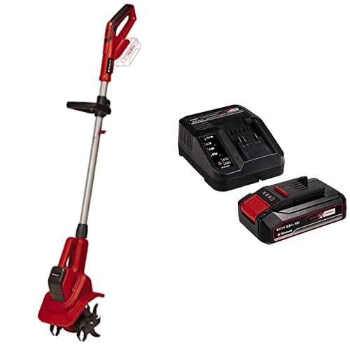 Einhell Motobineuse sans fil GE-CR 18/20 Li E-Solo Power X-Change (18 V, Ions Li, réglage de Vitesse, Lame scarifiante, Prise supplémentaire) avec chargeur et batterie 2,5Ah