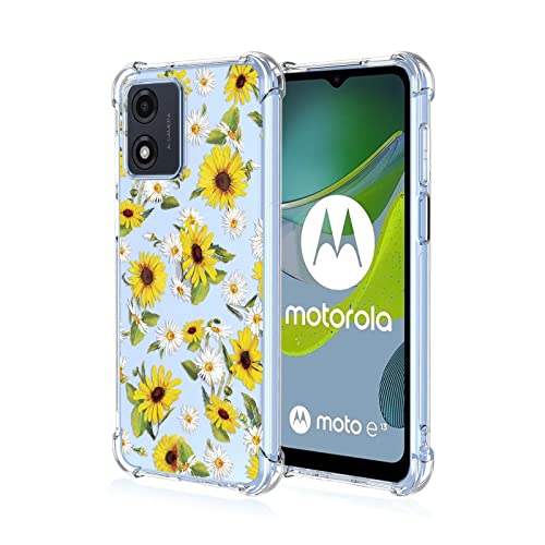 HONLEN Coque pour Motorola Moto E13 Étui, (6.5" inches) Transparente Dégradée TPU Silicone Quatre Coins Renfort d'angle Case - Tournesol