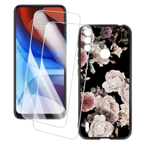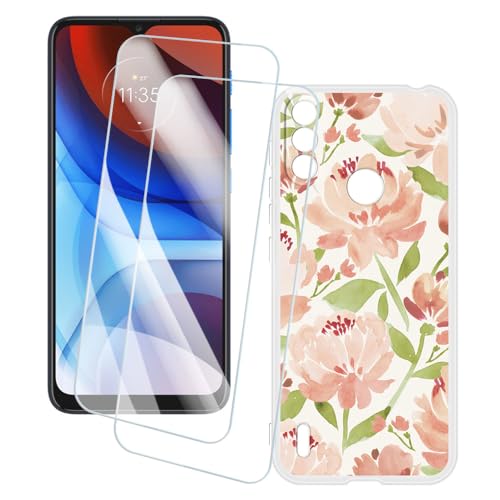 OAGELIM 2 Pack Protège-Écran + Coque Compatible avec Motorola Moto E7i Power (6.5 Pouce) Coque Impression Artistique Personnalisée et Film Verre Trempé (Fleurs)