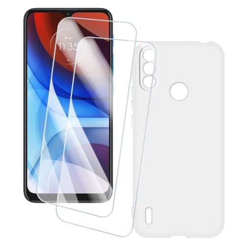 KJYF Coque pour Motorola Moto E7i Power, 1 Pack Verre trempé Protecteur écran, Transparente Silicone Souple TPU Etui, Antichoc Cover en Protection Case pour Motorola Moto E7i Power (6.5") - DUO5