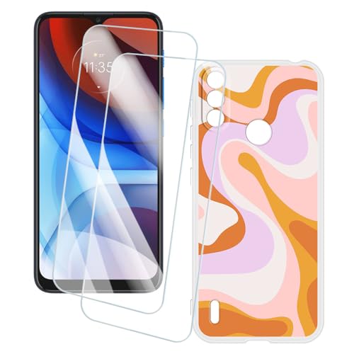OAGELIM 2 Pack Protège-Écran + Coque Compatible avec Motorola Moto E7i Power (6.5 Pouce) Coque Impression Artistique Personnalisée et Film Verre Trempé (Coloré)
