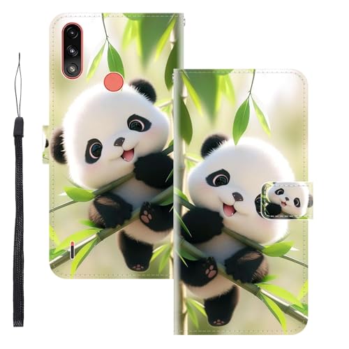 WUACYEAMING Coque pour Motorola Moto E7i Power,Protection Housse en Cuir PU Portefeuille à Rabat Motif Cover Kickstand Bumper Antichoc [Fentes pour Cartes] Panda