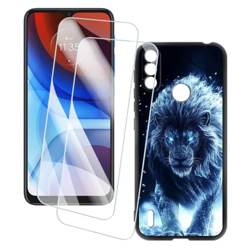 OAGELIM 2 Pack Protège-Écran + Coque Compatible avec Motorola Moto E7i Power (6.5 Pouce) Coque Impression Artistique Personnalisée et Film Verre Trempé (Lion)