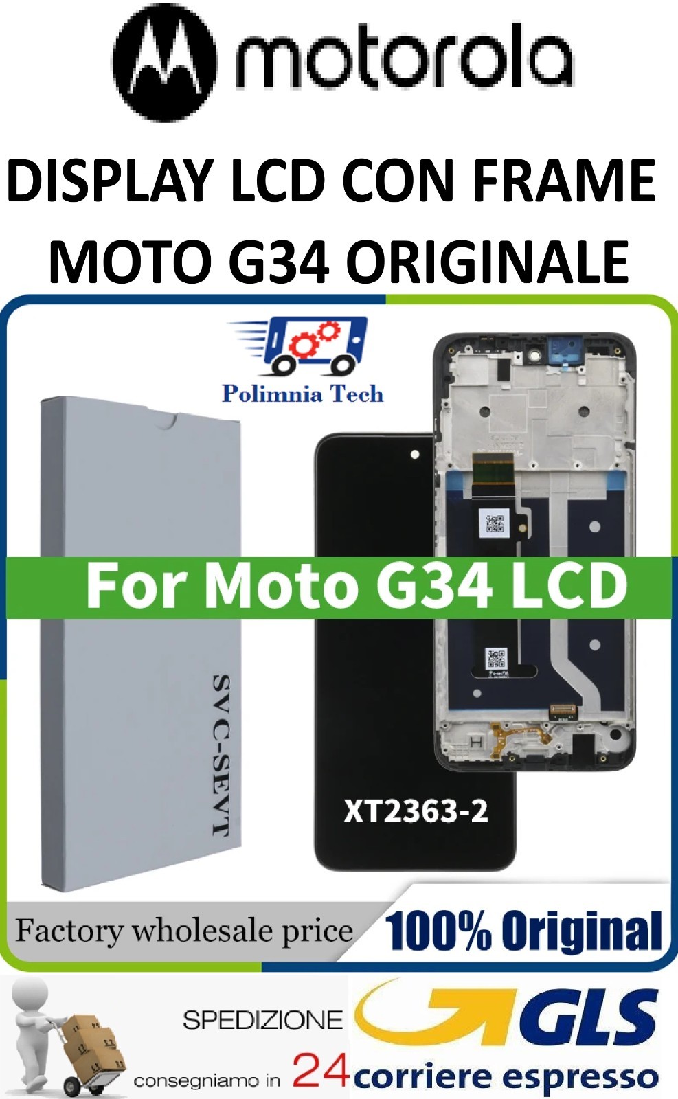 Écran LCD Tactile Avec Cadre Motorola Moto G34 XT2363 VRAI ORIGINAL GLS