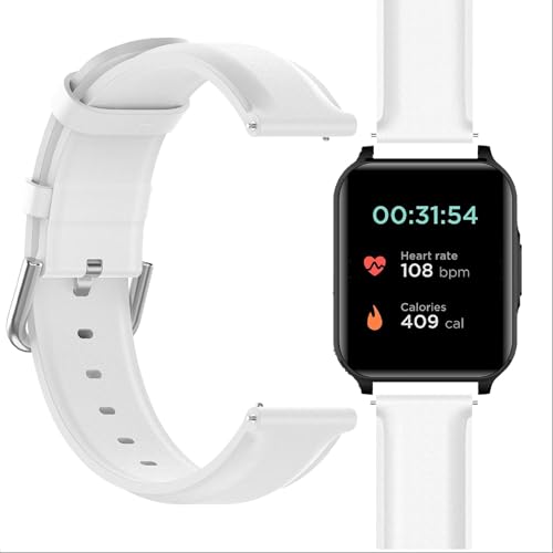 GIOPUEY Bracelet Compatible avec Motorola Moto Watch 70, Cuir véritable Sangle Bracelet [Résistant à l'usure] [Respirant] Montre Bracelet - White