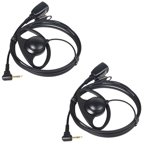 Walkie Talkie Earpiece 1 Pin 2.5mm Compatible with Motorola TLKR T92 H2O T60 T80 T82 Extreme D Shape Headset with Mic (2pcs)