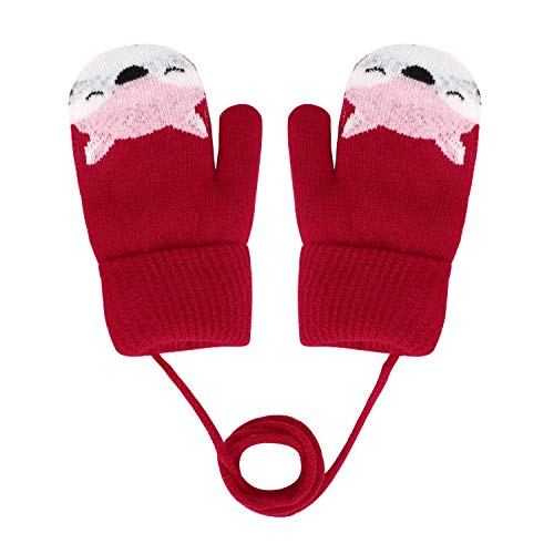 Gants bébé Moufle Mignon Gants Tricoté à tête Renard Enfant Gants avec Double Doublure Gants Hiver Filles Garçons Anti-Perdue Cadeau Noël