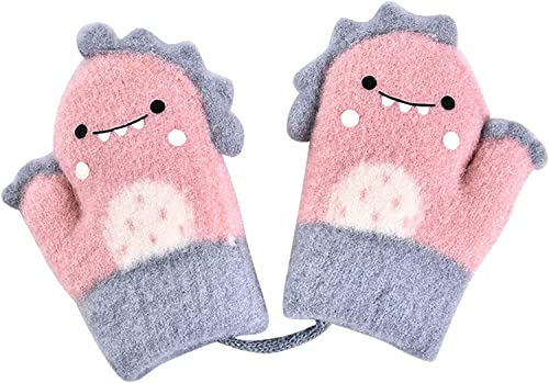 GizellMG Moufle Fille Chaud Gants de Dinosaure Bébé Moufles Hiver Gants Doublure Peluche Mitaine Unisexe Doigt Complet avec Corde Anti Perdu 1-3 Ans