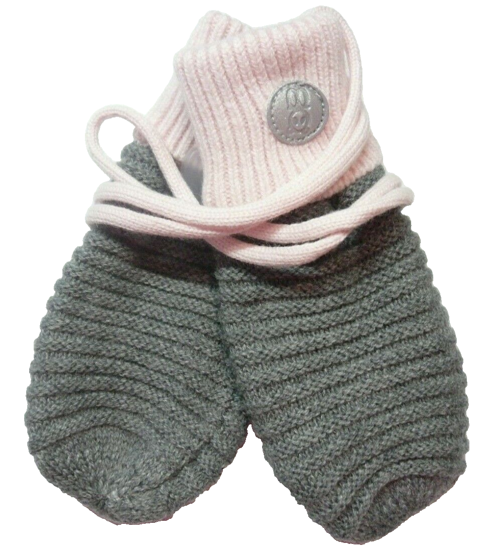 Obaïdi moufle gris/rose tricoté doublée polaire bébé fille 3 mois