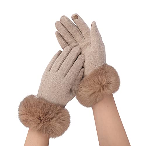 OhMill Gants Fourrure de Lapin à Écran Tactile Moufle Femme d'hiver Gants Chauffants Mitaine Plein-Doigts Moufle d'hiver Chauds en Cachemire Chic pour Voyage Vélo