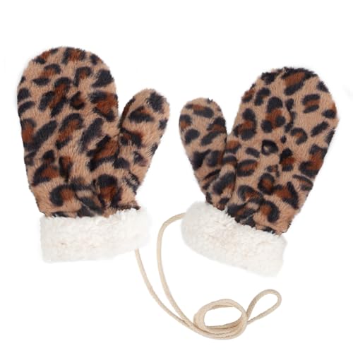 RUIXIA Moufle en Peluche pour Femme Moufle en Motif d’Imprimé Léopard Gants Chaud Hiver avec Corde Gants Épais Doublure Polaire pour Ski Cyclisme en Plein air