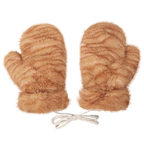 RUIXIA Moufle en Fausse Fourrure pour Femme Moufle Mignon avec Corde Gants Chaud Hiver Gants Épais Doublure Polaire pour Ski Cyclisme en Plein air