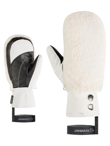 Ziener Katniss-Z Moufle de Ski pour Femme pour Sports d'hiver thermoscellé intérieur Cuir Fausse Fourrure Blanc M