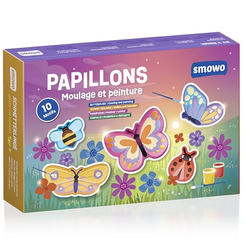 Smowo® Moulage Plâtre Enfant - Mouler et Peindre soi-même des Papillons et Motifs Printaniers - Kit de Bricolage avec 10 Figurines pour Filles et Garçons