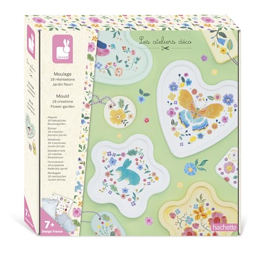 Janod - 16 Objets à Réaliser en Platre - 12 Porte-clés + 4 coupelles à décorer - Kit Moulage - DIY - Kit Loisir Créatif Enfant - Motricité Fine et Concentration - Dès 7 Ans - J09162