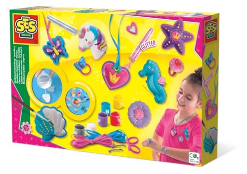 SES Creative | Kit Moulage et Peinture Bijoux | Création de Bijoux en Plâtre | Moule Réutilisable | 6 Peintures & Paillettes Inclus | Activité Créative Enfant Dès 5 Ans | Fabrication Facile & Amusante