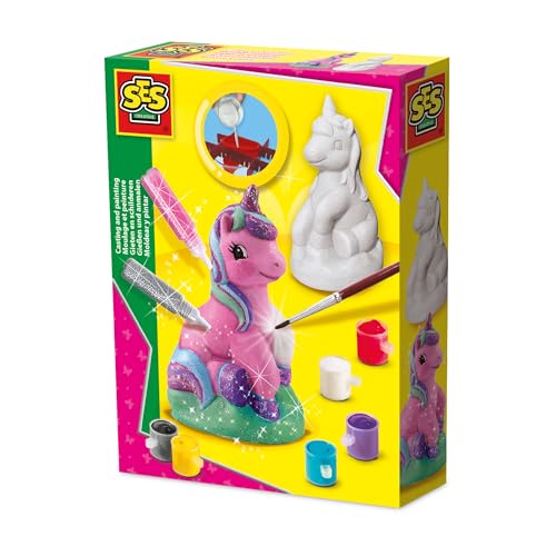 SES Creative | Moulage Et Peinture Licorne | Kit Créatif Enfant 3D | Plâtre + 6 Peintures + Paillettes | Crée 3 Licornes Magiques | Jouet 100% Neutre en CO2 | Idée Cadeau dès 5 Ans |1299