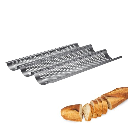 Feelino Moule Baguette, Moule a Pain en Acier au Carbone, Moule a Baguette de Pain Four, Moule à Pain Perforé Résistants au Lave-vaisselle, Kit Plaque Cuisson Baguette Perforée, Moules à Baguettes