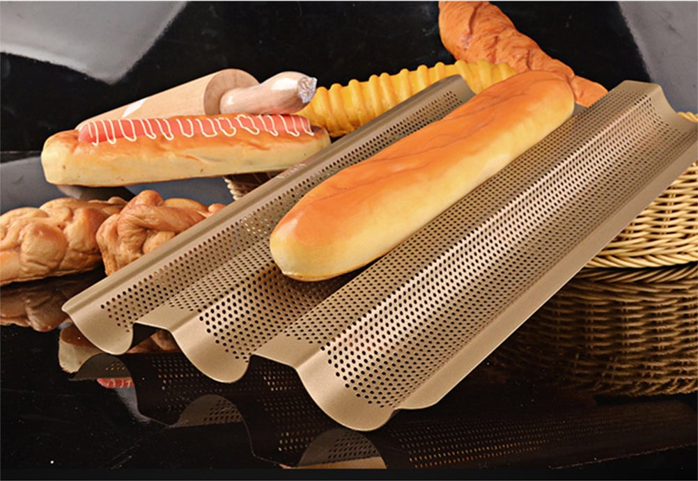 moule à pain 3 cannelures Baguette Waves Baking Tray Pan Bread Baking Tool Silver
