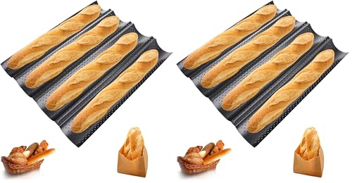 ASelected Plaque de cuisson à baguette avec revêtement antiadhésif pour 4 baguettes - Moule à pain perforé avec 4 cavités (Lot de 2)