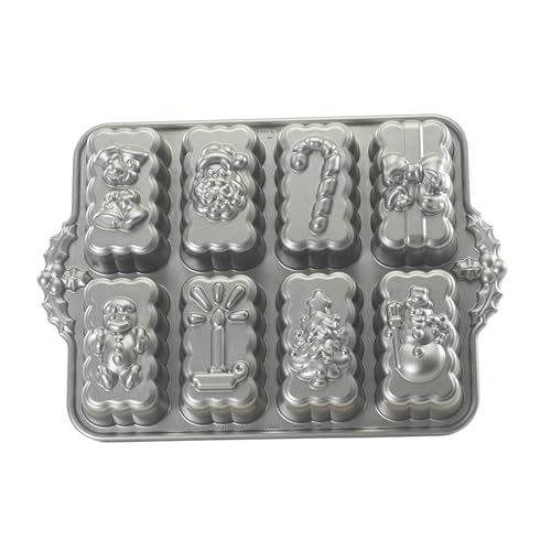 Nordic Ware - Moule à gâteau, moule à pâtisserie - Moule 16 mini gâteaux assortis Thé de Noël Silver - Revêtement antiadhésif - Fonte d'aluminium