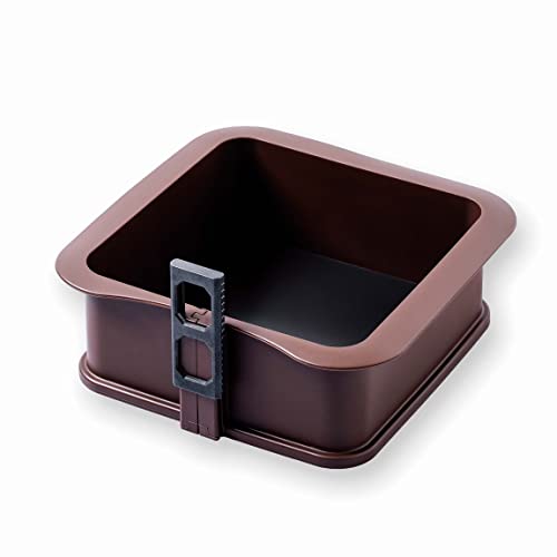 LACOR - 66779 - Moule carré détachable en silicone alimentaire 100% antiadhésif avec base en verre, fermeture sécurisée, idéal pour gâteaux et gâteaux, base en verre, 18,18x7 cm, marron