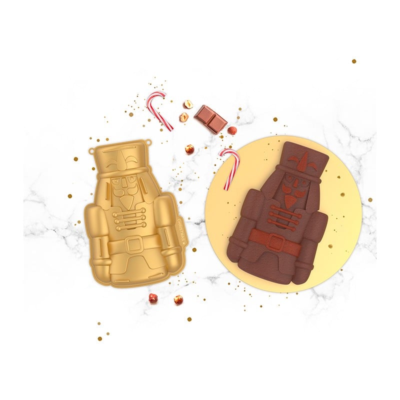 ScrapCooking - Moule en Silicone Casse-Noisette - Moule à Gâteau, Bûche & Biscuits de Noël - Ustensile Souple Pâtisserie - Apte Four & Congélateur - Bonhomme Nutcracker - Doré - 2999