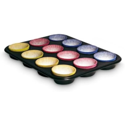 Guardini, Moule 12 muffins + 60 gobelets en papier, Acier avec revêtement antiadhésif, Noir, Fabriqué en Italie, Ligne Gardenia