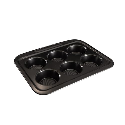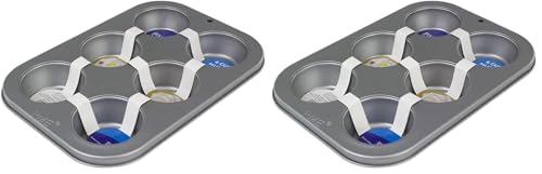 Chef Aid Moule à Muffins pour 6 pièces – Plaque de cuisson antiadhésive en acier carbone – Compatible four, réfrigérateur et congélateur – Couleur grise (Lot de 2)