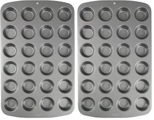 PME CSB111 Moule Anti-adhérent en Acier au Carbone pour 24 Mini Muffins, Acier Inoxydable, Silver, 39.4 x 24.6 x 2.1 cm (Lot de 2)