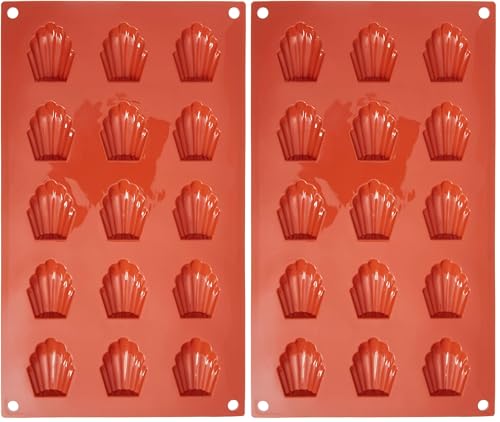 VINATO Lot de 2 Moules à Madeleine en Silicone avec Pinceau, Moule Silicone Antiadhésif, 9 Cavités, Sans BPA, Réutilisables, Moule Forme de Coquille pour Madeleines, Biscuits, Chocolat, Rouge