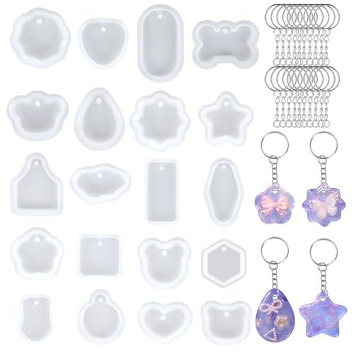 Yicenmy 20 Pièces Moule Silicone Resine Epoxy, Moule Resine Epoxy avec 20 Anneaux Porte-Clés, Moules Resines Epoxy Bijoux pour La Fabrication De Savons et De Bijoux En Résine