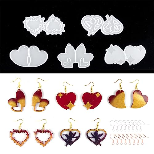 KyeeaDIY 5pcs Moule Resine Epoxy Boucles D'oreilles avec Crochets Boucles D'oreilles Moule Silicone Resine Epoxy Coeur Moules Résine La Saint-valentin Bijoux Pendentifs Porte-clés (2 heart)