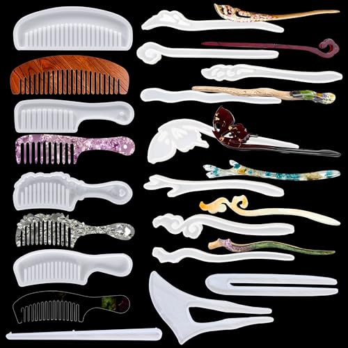 Cayway 12 PCS Pince à Cheveux en Résine Époxy Moule Silicone et 4 PCS Moule Resine Epoxy Peigne pour L'artisanat en Résine Époxy, Pinces à Cheveux, Peignes et Accessoires de Bricolage