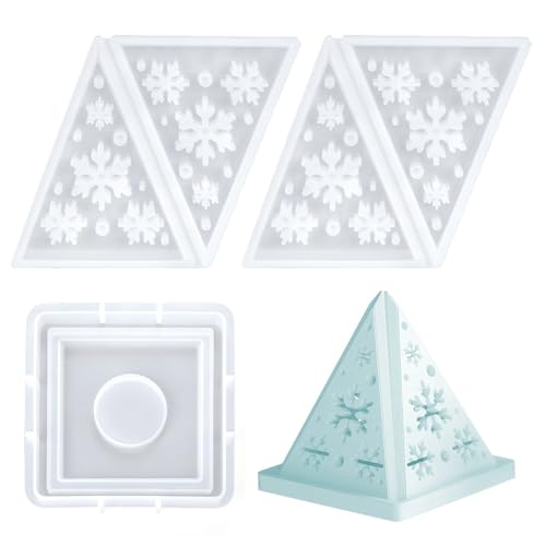 Waitamo Moule Resine Epoxy, Moule en Résine Chandelier Pyramidal Moule Silicone Resine Epoxy pour Bougeoirs pour Bougies Décorations D'intérieur (Snowflake Pyramid)