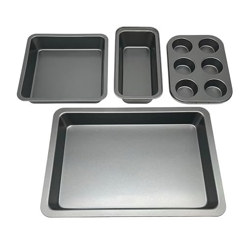 Relaxdays Set de 4 pièces, moules à Muffins, Cake et Plats à rôtir, antiadhésifs, Acier Carbone, Gris foncé 5.5x41.5x28.