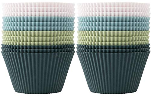 Lesipee Lot de 12 moules à cupcakes, muffins en silicone - 4 couleurs - Réutilisables - Sans BPA - Pour gâteaux et puddings (24 pièces)