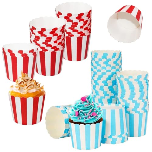 Caissettes Cupcake, Moules à Cupcakes en Papier 100 Pièces, Rouges et Bleus Moules à Muffins en Papier, Moules à Muffins en Papier Solide, pour Halloween, Anniversaires, Mariages (Bandes)