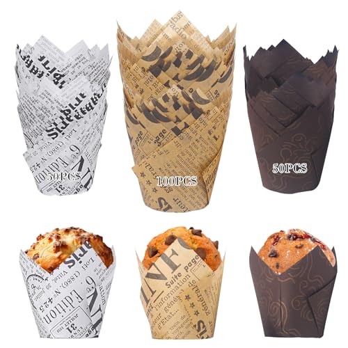 200 Pièces Caissettes de Muffins en Papier Tulipes, Moules à Muffins, Tasses de Cuisson, Emballages de Cupcakes
