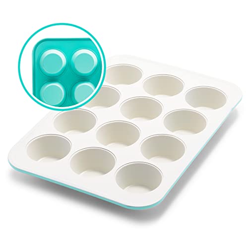 GreenLife Plateau de 12 Moules à Muffins et Cupcakes en Antiadhésive Céramique Saine, Sans PFAS, Démoulage Facile, Va au Lave-Vaisselle et au Congélateur, Va au Four jusqu'à 230°C, Turquoise