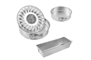 Ensemble de 3 moules à gâteaux avec moule à cake 30 cm + moule manqué 18 cm + moule à manqué et savarin 26 cm Zenker Silver