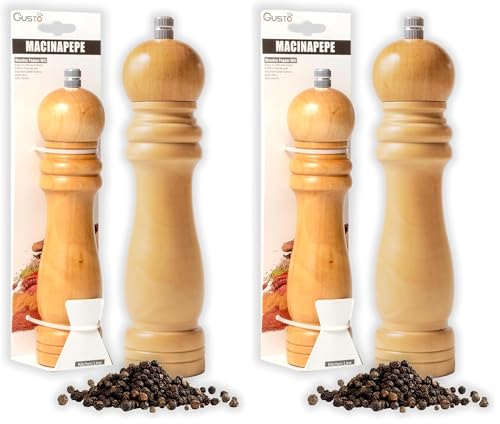 IPEA Moulin à Poivre manuel en Bois pour Poivre, Piment et Sel - Moulin à Poivre Classique de Cuisine avec Broyeur en Métal pour Moudre les épices, le Cumin, le Sésame, le Paprika (Lot de 2)