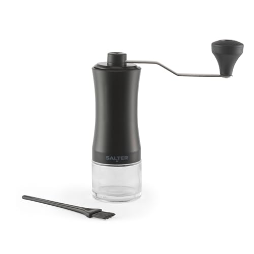 Salter Moulin à Café Manuel – Inc. Brosse de Nettoyage, 25g Grains & 30g Poudre, Nettoyage Facile, Compact & Portatif, Broyage en Céramique, pour Presse Française, Filtre, Machine Espresso, Noir