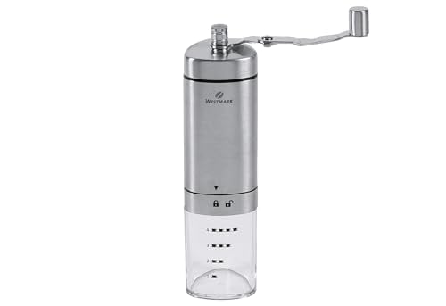 Westmark Moulin à Café Manuel avec Rouage en Céramique, Jusqu'à 4 Tasses de Café, Avec Graduations, Brasilia, Longueur: 20,5 cm, Acier Inoxydable/Céramique, 24902260