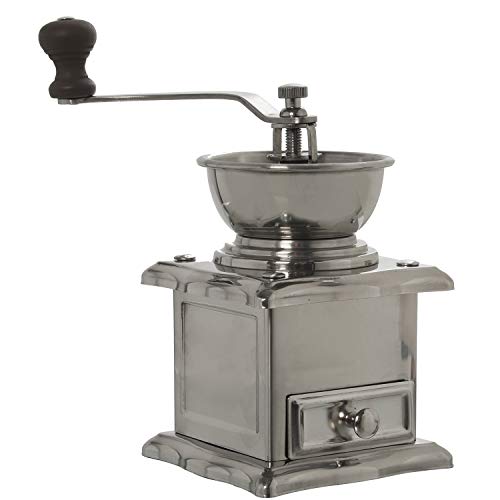 DRW Moulin à café manuel en acier inoxydable chromé 11 x 11 x 20 cm